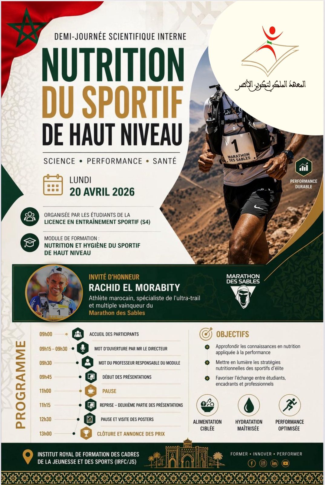 Dans le cadre des activités pratiques de la Licence en Entraînement Sportif, nos étudiants ont brillamment organisé une demi-journée scientifique interne dédiée à la nutrition et à l’hygiène du sportif de haut niveau.
